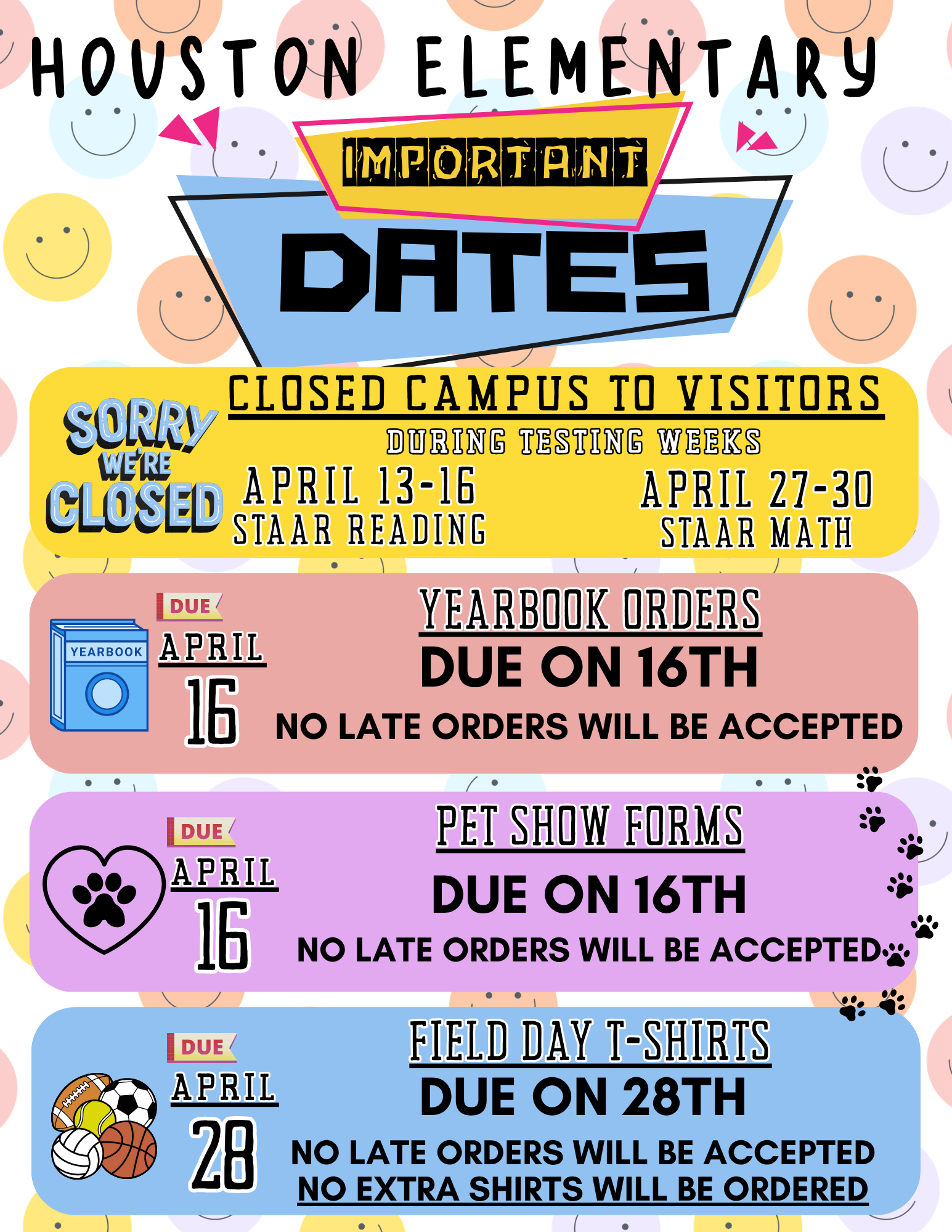 We have a lot going on the next few weeks. Please see below on when forms are due. Dates of events are on our Parent Square Calendar. Field Day forms have not been sent out yet, just wanted you to ...